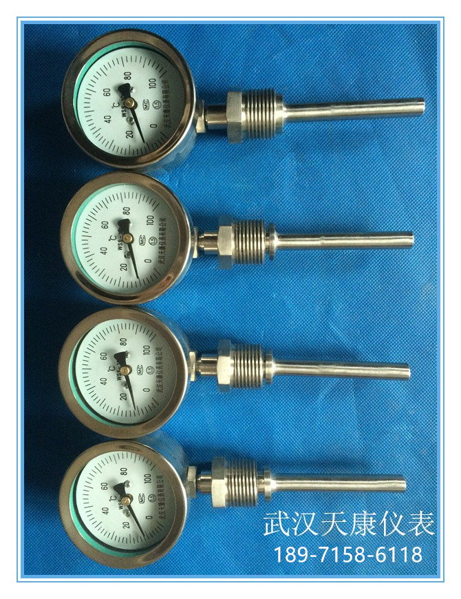 產(chǎn)品名稱(chēng):雙金屬溫度計(jì) 產(chǎn)品型號(hào):WSS-401 產(chǎn)品規(guī)格:L=900mm 測(cè)溫范圍:0-100℃ (可根據(jù)實(shí)際需要定做) 訂貨請(qǐng)注明:表盤(pán)直徑;保護(hù)管材質(zhì)及長(zhǎng)度;連接方式;溫度范圍