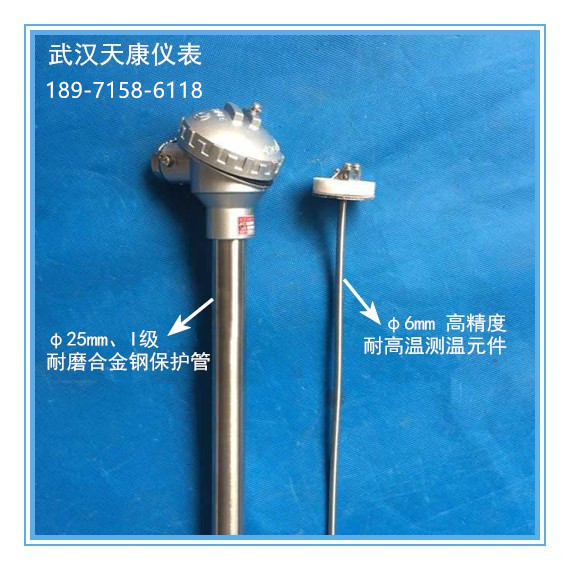 4、高溫合金耐磨2:采用特種耐熱和耐磨合金材料作為測(cè)溫外保護(hù)管,內(nèi)裝鎧裝芯體,既具有較高的對(duì)顆粒沖刷的耐蝕性能,是冶金行業(yè)運(yùn)用于高溫、耐磨環(huán)境中十分理想的溫度傳感器