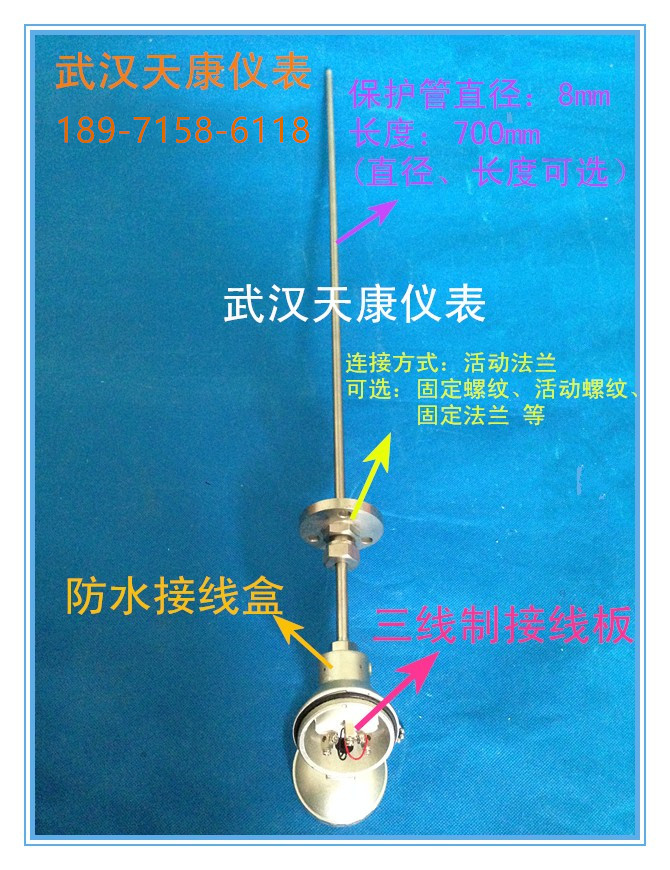 鎧裝熱電阻 型號:WZPK-338 分度號:Pt100 規(guī)格:700mm 溫度范圍:-200-450 保護管材質(zhì):304 咨詢熱線:189-7158-6118