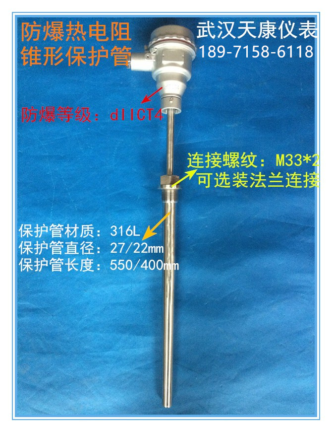 產(chǎn)品型號(hào):WZPK-640 分度號(hào):PT100 探頭長(zhǎng)度:400mm(可選) 探頭直徑:27/22mm(可選) 測(cè)溫范圍:A級(jí):-50-400℃ B級(jí):-200-+450℃ 生產(chǎn)廠家:武漢天康儀表 咨詢熱線:189-7158-6118